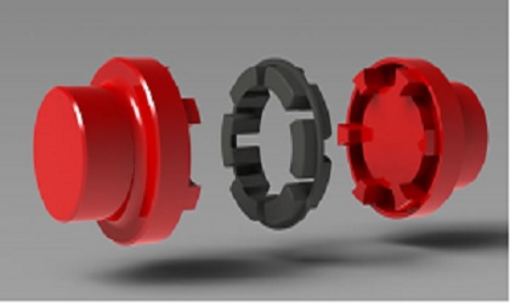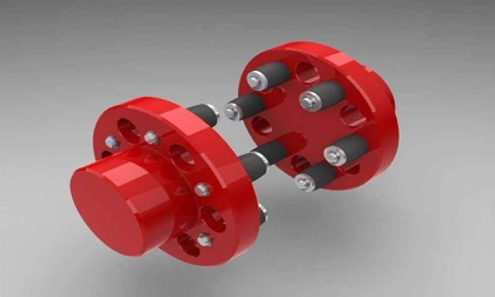 Composto por: dois cubos em ferro fundido nodular usinados e um elemento elástico em poliuretano. Dispõe de ótimas qualidades para compensação de deslocamentos axiais, radiais e angulares. Sua forma construtiva admite excelente rendimento em relação a torques.