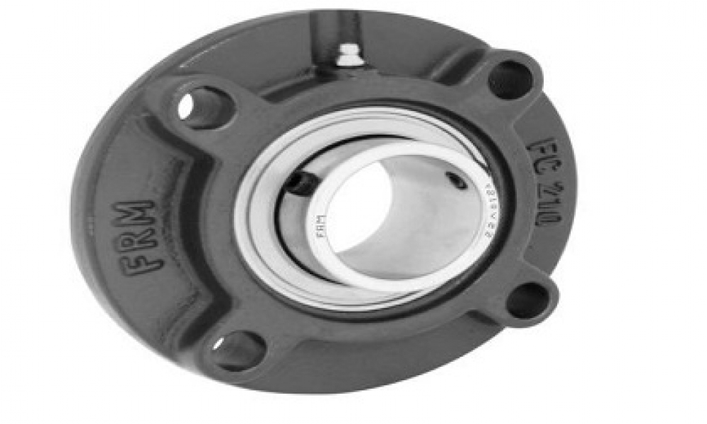 O mancal tipo flange em cartucho é composto pelo rolamento e pelo pedestral redondo para rolamentos, sendo fornecido com quatro saliências na sua superfície de montagem. Este saliência podem ser colocada em furos redondos na estrutura de forma a assegurar uma elevada precisão de instalação e preciso posicionamento. O mancal tipo flange em cartucho são utilizados principalmente em máquinas de colheita de milho e trigo.