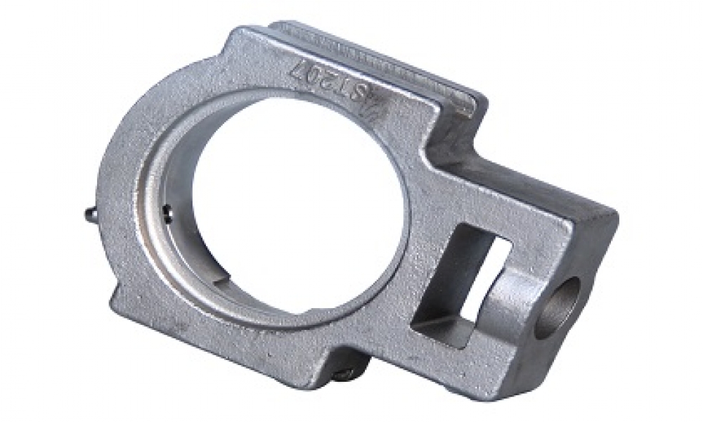 O mancal tipo chapa de aço estampada galvanizada de grossa espessura é composto por duas metades, entre as quais se monta o rolamento. A tolerância deste alojamento garante a fixação do anel externo somente quando são fixadas as duas metades por meio de parafusos.