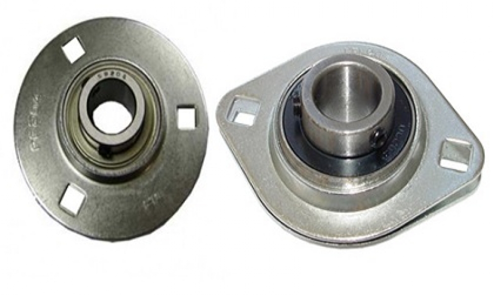 O mancal tipo flange é usado onde o eixo atravessa a estrutura da máquina em um ângulo reto, facilitando a montagem e fixação na face da máquina. Uma montagem de quatro parafusos é a mais comum, entretanto, onde a área de montagem for restrita, as versões de três ou dois parafusos estão disponíveis. O mancal tipo flange é pré-lubrificado e pronto para instalação imediata, um encaixe de graxa fornece a relubrificação caso seja exigida, o mancal de flange pode ser equipado com rolamentos com fixação por parafusos ou rolamentos com fixação por colar excêntrico.