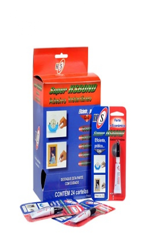 A cola HS BOND é um adesivo instantâneo de viscosidade ideal para os mais variados tipos de materiais. Indicado para colagem de materiais que requeiram adesão rápida com alta velocidade de cura. Adesivo instantâneo com alta velocidade de cura. Adere em diversos materiais como: couro, cortiça, cartolina, cerâmica, madeira, papel, metal, borracha, porcelana, louça e plástico e aos demais substratos. Não adere polietileno, polipropileno e silicone. Uso doméstico em geral.