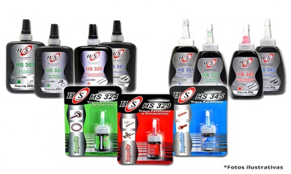 HS 330: Torque alto - Indicado para aplicação em parafusos, prisioneiros e superfícies rosqueadas que requeiram desmontagem esporádica. Possui alta resistência a temperatura.